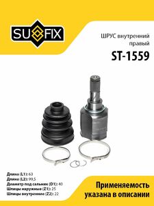 ШРУС внутренний R SUFIX ST-1559. Применение: NISSAN Almera Classic 1.6 06-12.