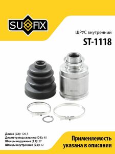 ШРУС внутренний SUFIX ST-1118. Применение: HONDA CR-V 2.0 01>.
