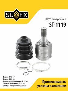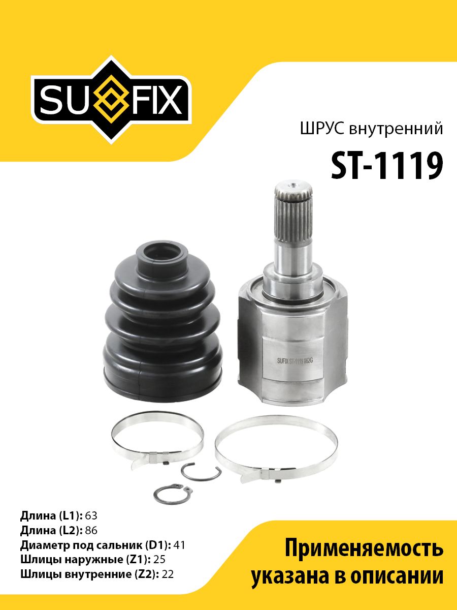 ШРУС внутренний SUFIX ST-1119. Применение: HYUNDAI Solaris 1.4-1.6 10>, KIA Rio 1.4-1.6 11>.