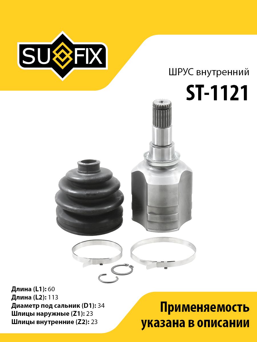 ШРУС внутренний SUFIX ST-1121. Применение: TOYOTA Auris(E150/E180) 1.3-1.6 07> / Avensis(T22/T25) 1.6-1.8 97-08 / Corolla(E120-E180) 1.3-1.6 01>.