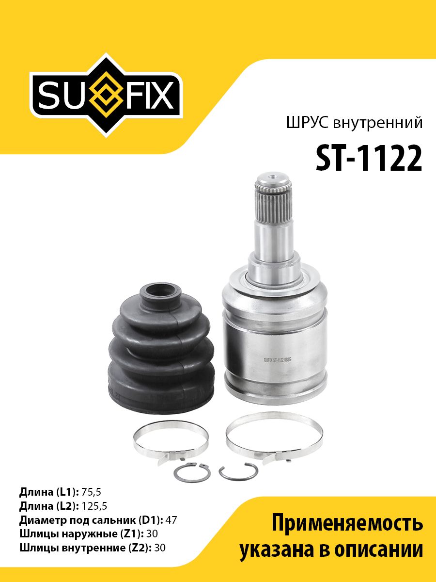 ШРУС внутренний SUFIX ST-1122. Применение: TOYOTA Land Cruiser Prado(120) 2.7-4.0 02-09 / 4Runner 3.0D-4.7 02-09 / FJ Cruiser 4.0 06>, LEXUS GX470 02-09.