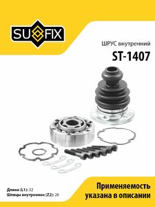 ШРУС внутренний SUFIX ST-1407. Применение: AUDI A4 1.8-2.5D 95-00 / A6 2.0-4.2 94-05 / A8 2.5D-4.2 97-02 / 80 2.0-2.3 91-94 / 100 1.8-2.8 >94, SKODA Superb(3U) 2.0 01-08, VW Passat 1.8-2.5D 96-05.
