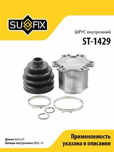 ШРУС внутренний SUFIX ST-1429. Применение: VW Sharan 1.8-2.8 97-10, FORD Galaxy 1.9D-2.8 00-06.