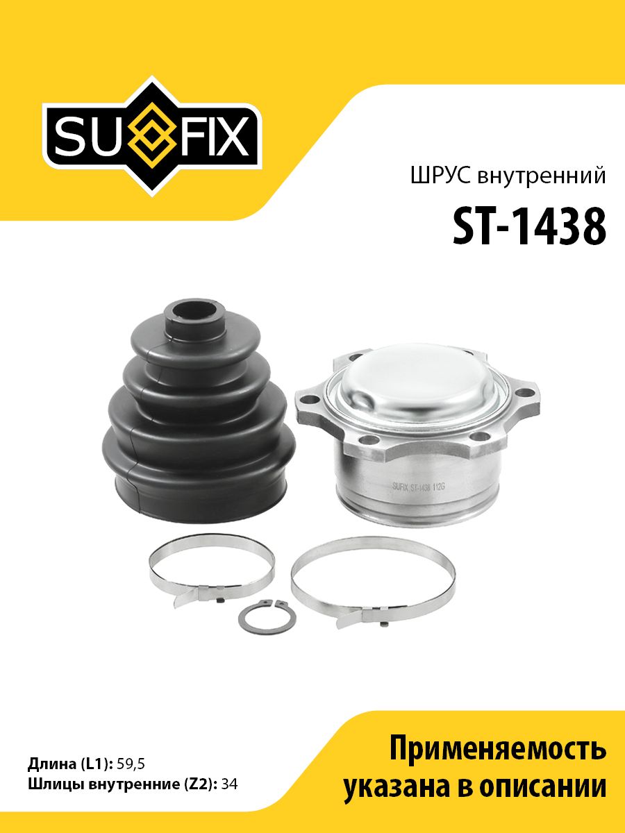 ШРУС внутренний SUFIX ST-1438. Применение: AUDI A4 1.9D-2.8 95-00, SKODA Superb I 1.9D 01>, VW Passat 1.9D-2.8 96-00.