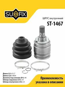 ШРУС внутренний SUFIX ST-1467. Применение: NISSAN Almera(N15/N16) 1.4-1.5 95-01 / AD(Y10/Y11) 1.3-1.7D 90-08.