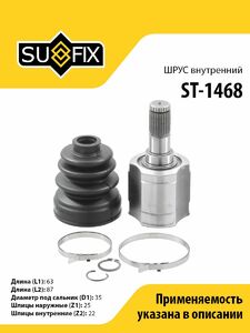 ШРУС внутренний SUFIX ST-1468. Применение: HYUNDAI Accent(X3/LC/MC) 1.3-1.6 94-10 / Getz 1.3-1.6 03-10.
