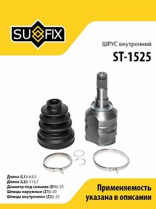 ШРУС внутренний SUFIX ST-1525. Применение: TOYOTA Auris(E15) 1.4D-1.6 07-12 / Avensis(T25) 1.8 03-08 / Corolla(E15) 1.4D-1.6 06-13.