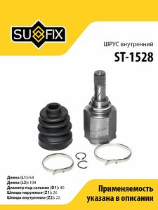 ШРУС внутренний SUFIX ST-1528. Применение: LADA Largus 1.6 12>, RENAULT Clio III 1.4-1.5D 05> / Modus 1.4-1.5D 04>.