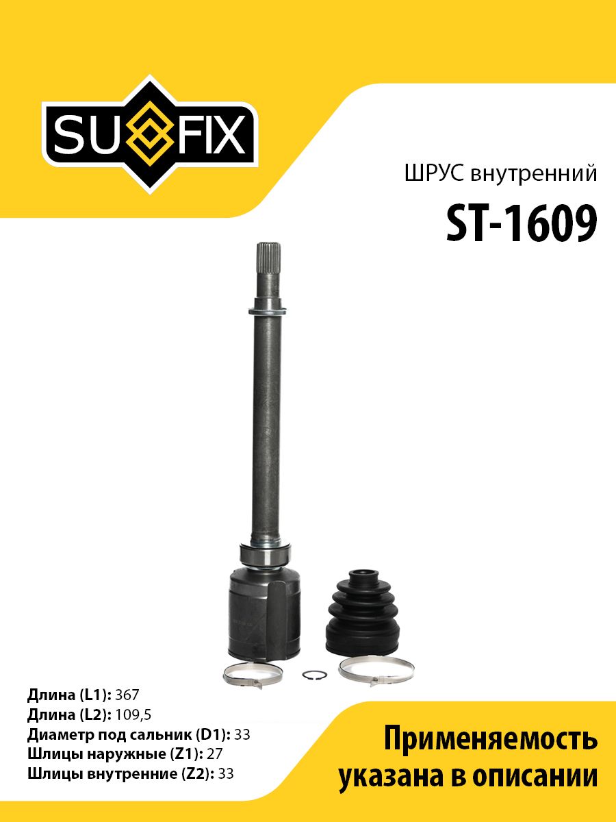 ШРУС внутренний SUFIX ST-1609. Применение: NISSAN Qashqai(J10) 2.0 06-14 / X-Trail (T31) 2.0 07-13.