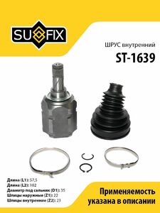 ШРУС внутренний SUFIX ST-1639. Применение: OPEL Astra H 1.8 04-14.