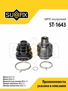 ШРУС внутренний SUFIX ST-1643. Применение: FORD Mondeo III 2.5 24V 00-07 / Mondeo III 2.5 V6 24V 00-07 / Mondeo III 3.0 V6 24V 00-07 /Mondeo III ST220 00-07.