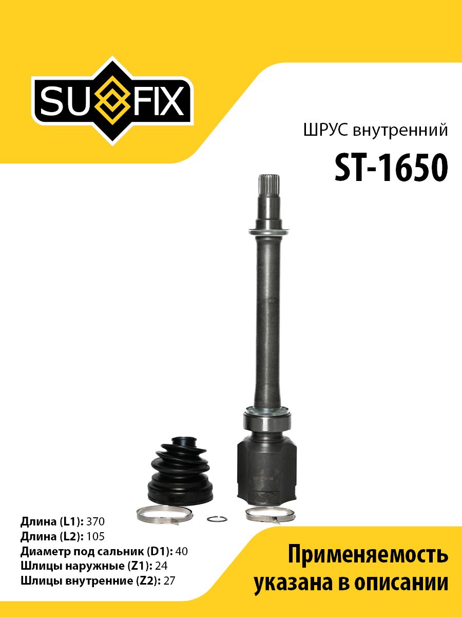 ШРУС внутренний SUFIX ST-1650. Применение: TOYOTA Camry (V30) 2.0 01-06 / Camry (V30) 2.4 01-06 / Camry (V40) 2.4 06-14 / RAV 4 (XA30) 2.2 D 05-14 / RAV 4 (XA40) 2.2 D 12.