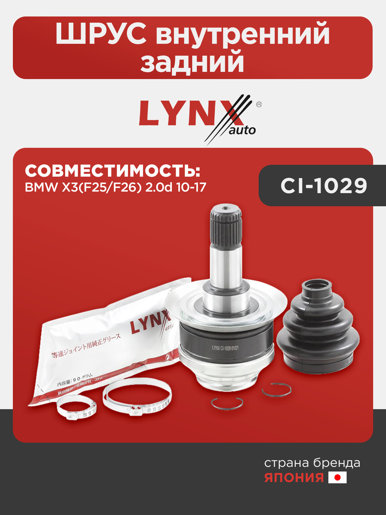 ШРУС внутренний задний LYNXauto CI-1029. Для BMW БМВ X3(F25/F26) 2.0d 10-17