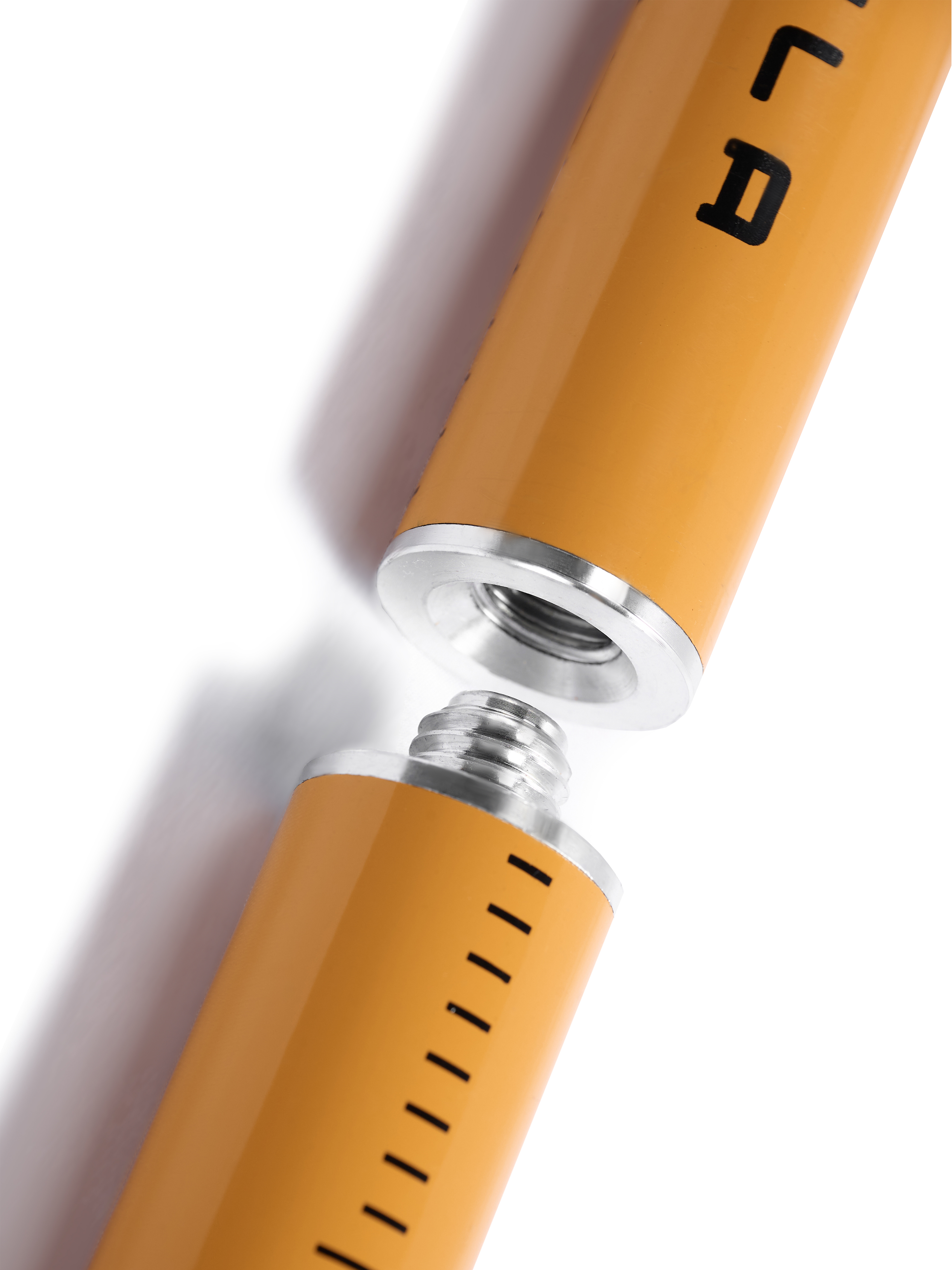 Штанга состоит из 6 секций позволяя работать с высотами до 3,8м. Пять колен имеют длину 60см, шестое снабжено домкратным механизмом для надёжной фиксации конструкции. Особой устойчивости добавляет мягкая упорная пятка на штативе, что позволяет работать на неровных поверхностях без риска соскальзывания. Доступно наращивание или замена колен, обновляя и продлевая срок службы надёжного помощника.