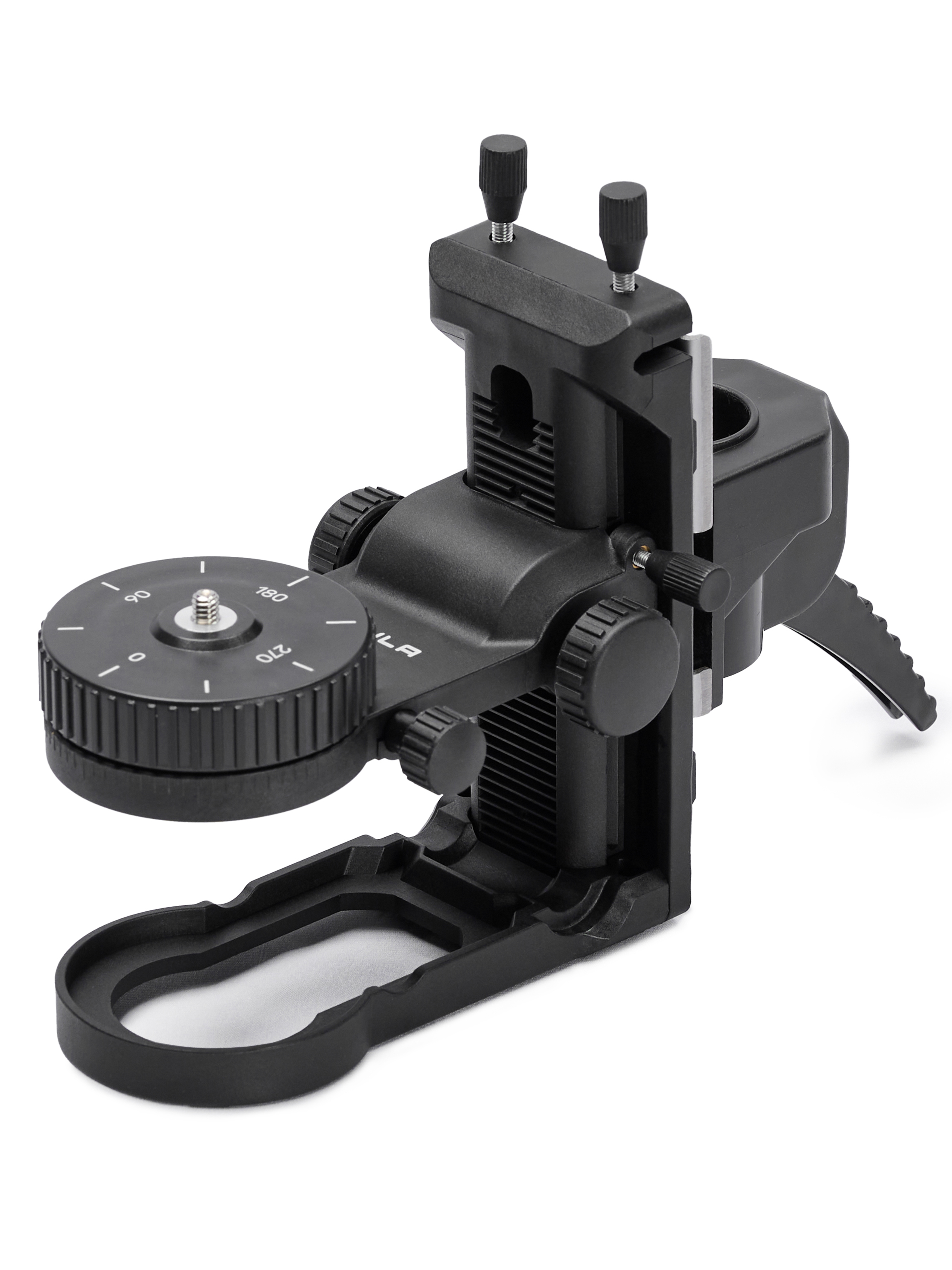 Для быстрой установки прибора используется подвижный фиксатор/слайдер, более точная подводка осуществляется с помощью микролифта оснащённого поворотным основанием. Наведение по горизонтали и по вертикали происходит регулировочными винтами доводя точность и удобство до абсолюта.