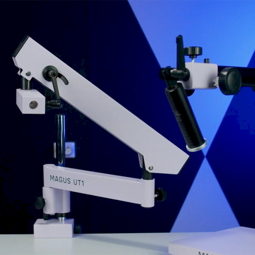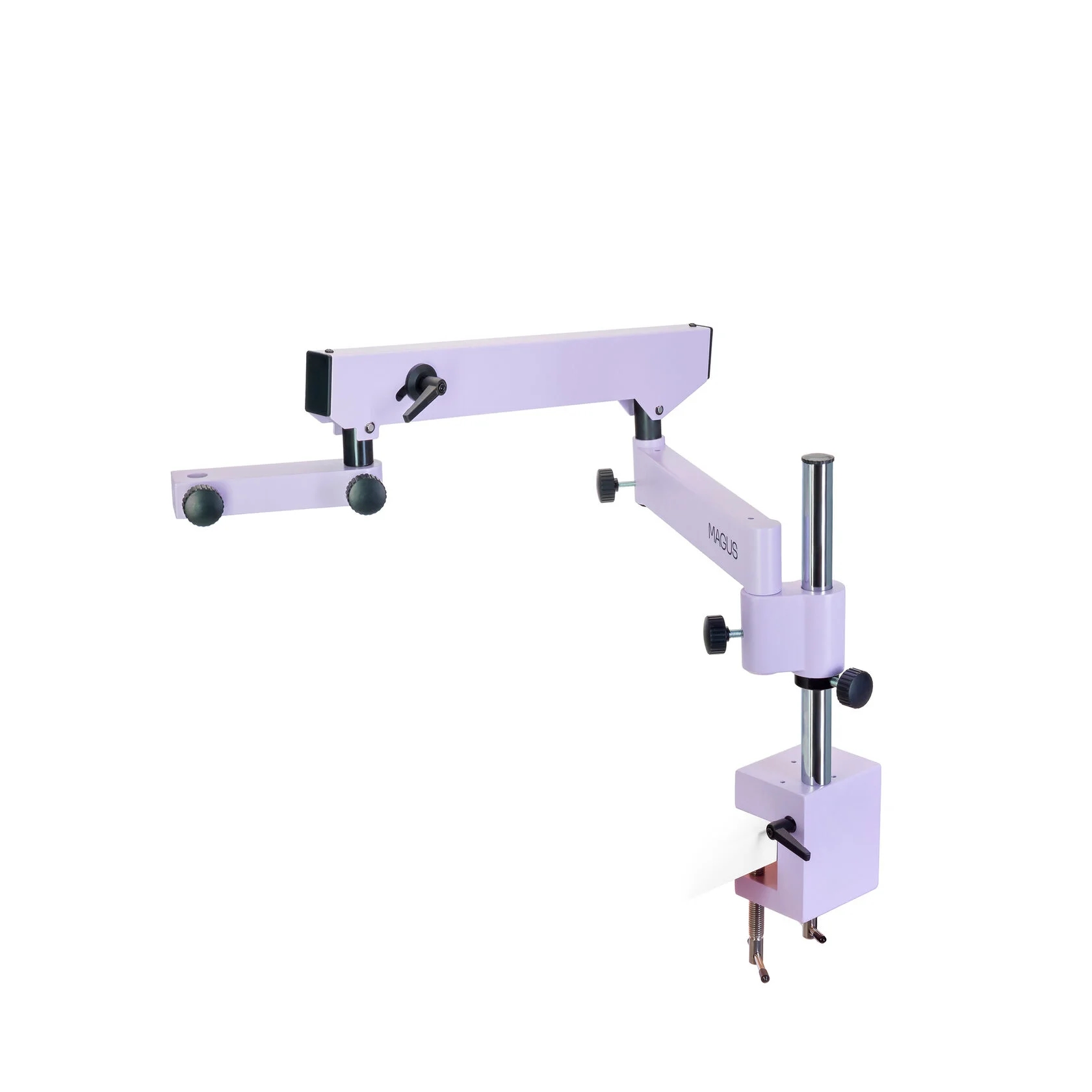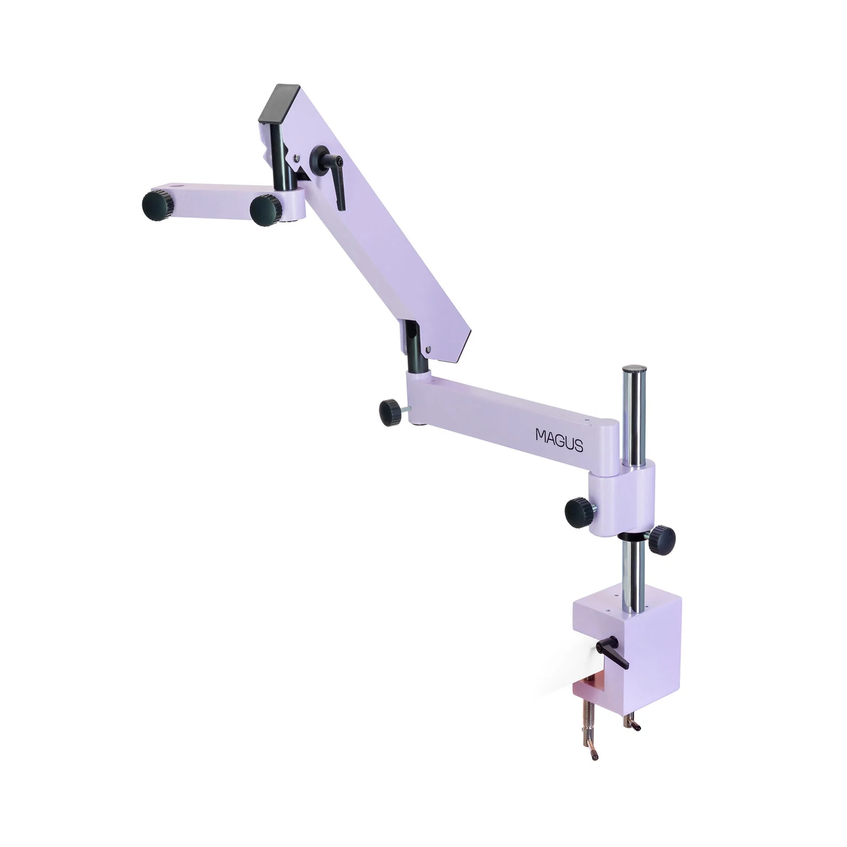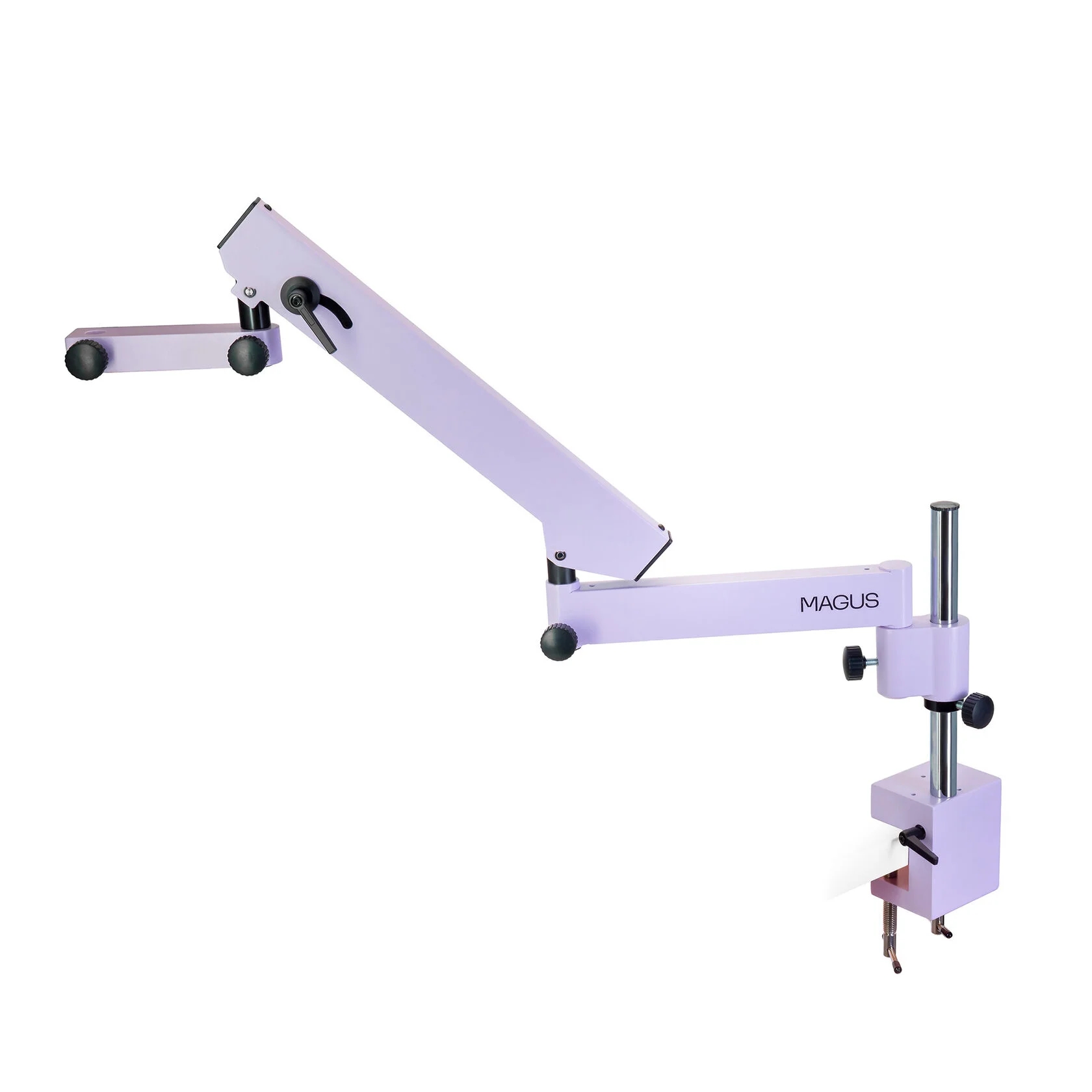 Штатив MAGUS UT1 состоит из четырех секций и крепится к краю рабочего стола при помощи надежной струбцины. Предусматривает регулировку по высоте, настройку горизонтального выноса и вращение.