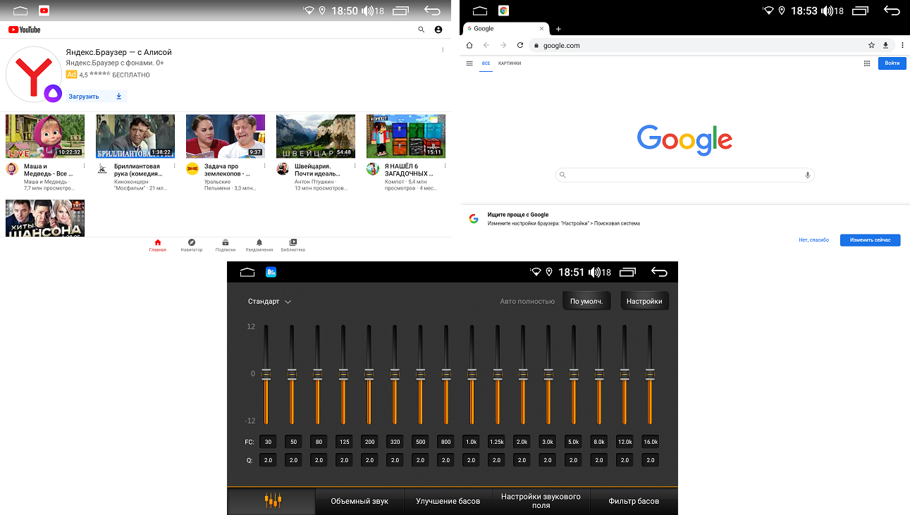 ШГУ FarCar оснащены морозостойким Multi-touch экраном высокой яркости c HD разрешением для великолепного воспроизведения мультимедиа. Встроенный звуковой процессор DSP приятно удивит кристальным звуком, благодаря поддержке аудио файлов без потери качества APE, FLAC и пр.