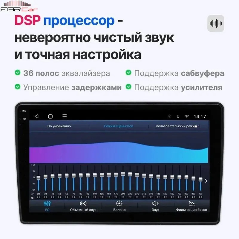 - 9-дюймовый сенсорный емкостной широкоформатный дисплей с QLED-матрицей и разрешением 1280x720 пикселей обеспечивает яркое и четкое изображение. - Встроенный DSP-процессор и процессор UIS8581A с 8 ядрами ARM cortex A55 и частотой 1.6 ГГц 64-bit обеспечивают быструю и плавную работу устройства. - 6 ГБ оперативной памяти и 128 ГБ встроенной памяти позволяют хранить большое количество данных и приложений. - Встроенный GPS-модуль Ublox с поддержкой GPS и ГЛОНАСС обеспечивает точное позиционирование. - Поддержка видеоформатов AVI, RM, RMVB, WMV, ASF, FLV, MPG, MP4, VOB, 3GP, RMVB 1080P и аудиоформатов APE, FLAC, MP3, WMA, WAV, OGG. - Поддержка CarPlay и Android Auto для удобства использования. - Возможность подключения камеры заднего вида и вывода изображения на экран. - Выходная мощность усилителя звука составляет 4x45 Вт MOSFET, что обеспечивает качественное звучание. - Поддержка беспроводных интерфейсов Bluetooth, Wi-Fi и сотового GSM. - Совместимость с Android и iOS.