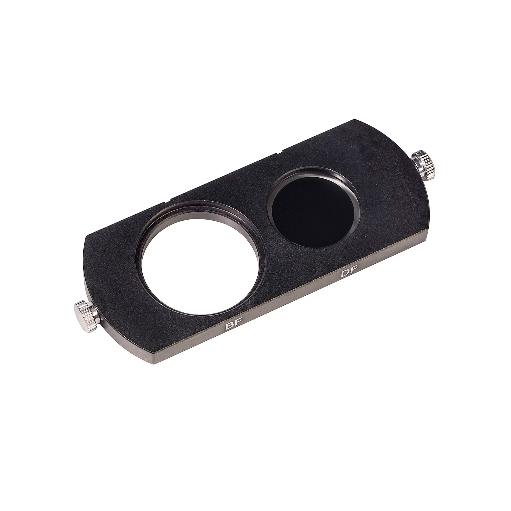 Слайдер представляет собой пластину с двумя круглым отверстиями. Одно отверстие свободное для работы по методу светлого поля. Второе отверстие закрывает диафрагма темного поля. Слайдер устанавливают в слот конденсора Аббе и используют вместо сухого конденсора темного поля для работы на объективах с апертурой до 0,9. Слайдер упрощает переключение с одного метода исследования на другой.