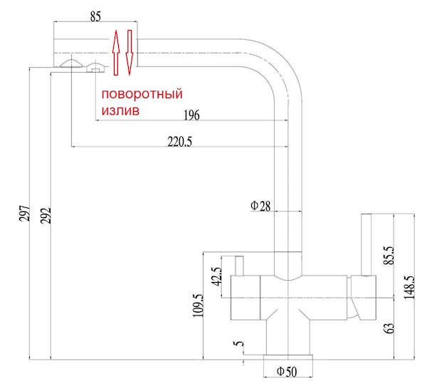 Длина излива: 220 мм