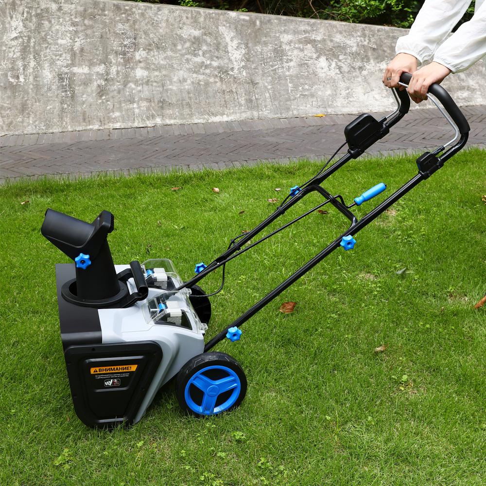 Ширина захвата — 50 см, высота ковша — 25 см, максимальная дальность выброса снега — до 7 метров. Пластиковый шнек мягко, но уверенно справляется с мягким и слежавшимся снегом, не повреждая покрытие. Снегоуборщик не является самоходным — его легко толкать вперёд благодаря лёгкому весу и эргономичной конструкции.