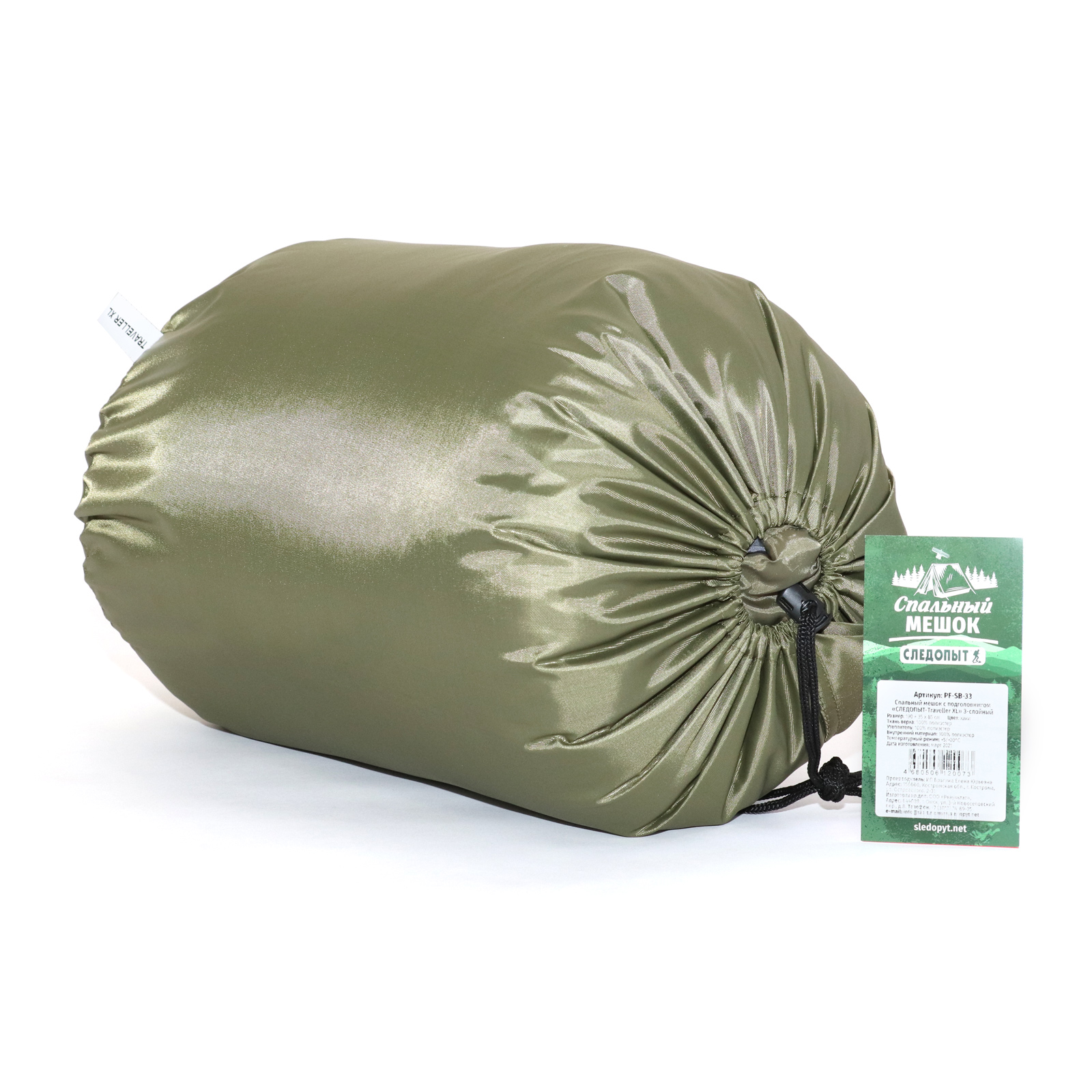 Спальный мешок с подголовником СЛЕДОПЫТ Traveller XL,190+35х85см,±5%,до 0С,утеп.термо 300г/м2,цв хаки