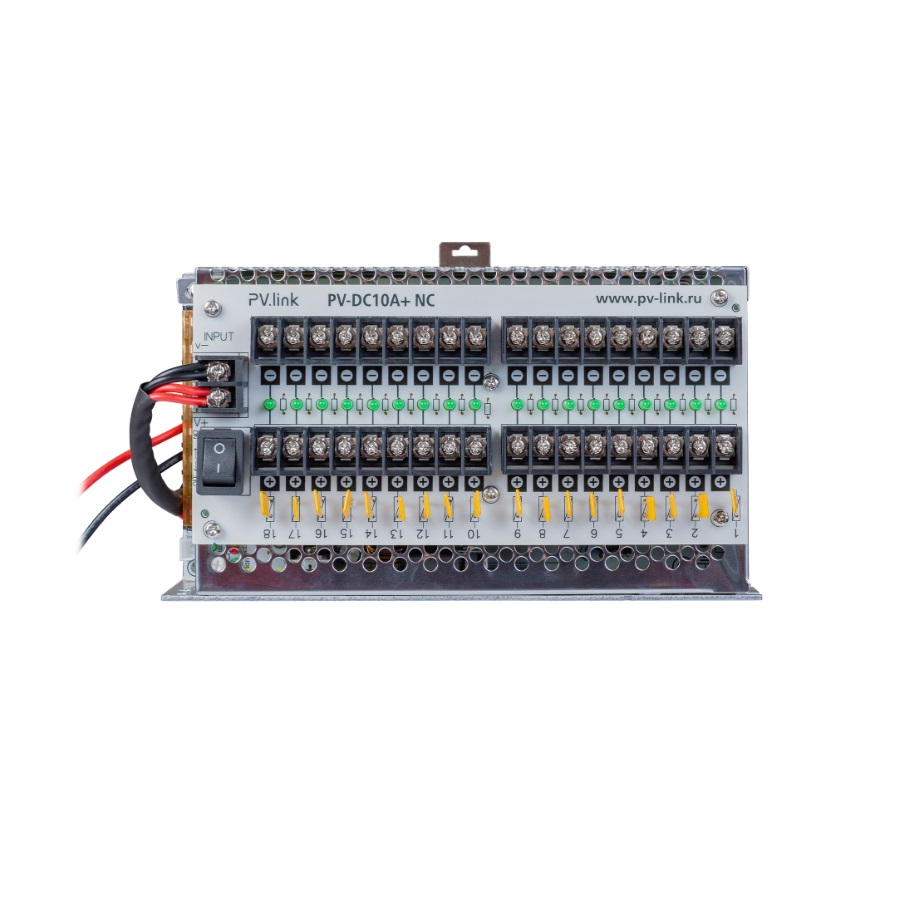 Профессиональный блок питания PV-DC10A+ NC, создан на основе высоконадежных элементов, предназначен для обеспечения питания устройств постоянным напряжением 12 В. Блок питания PV-link удобно монтировать благодаря удобной конструкции. На задней стенке блока питания расположено крепление на DIN рейку, для установки в телекоммуниционные шкафы и электрические ящики. Предусмотренная колодка для коммутация рассчитана на 18 устройств, каждый выход оснащен самовосстанавливающимися предохранителями.