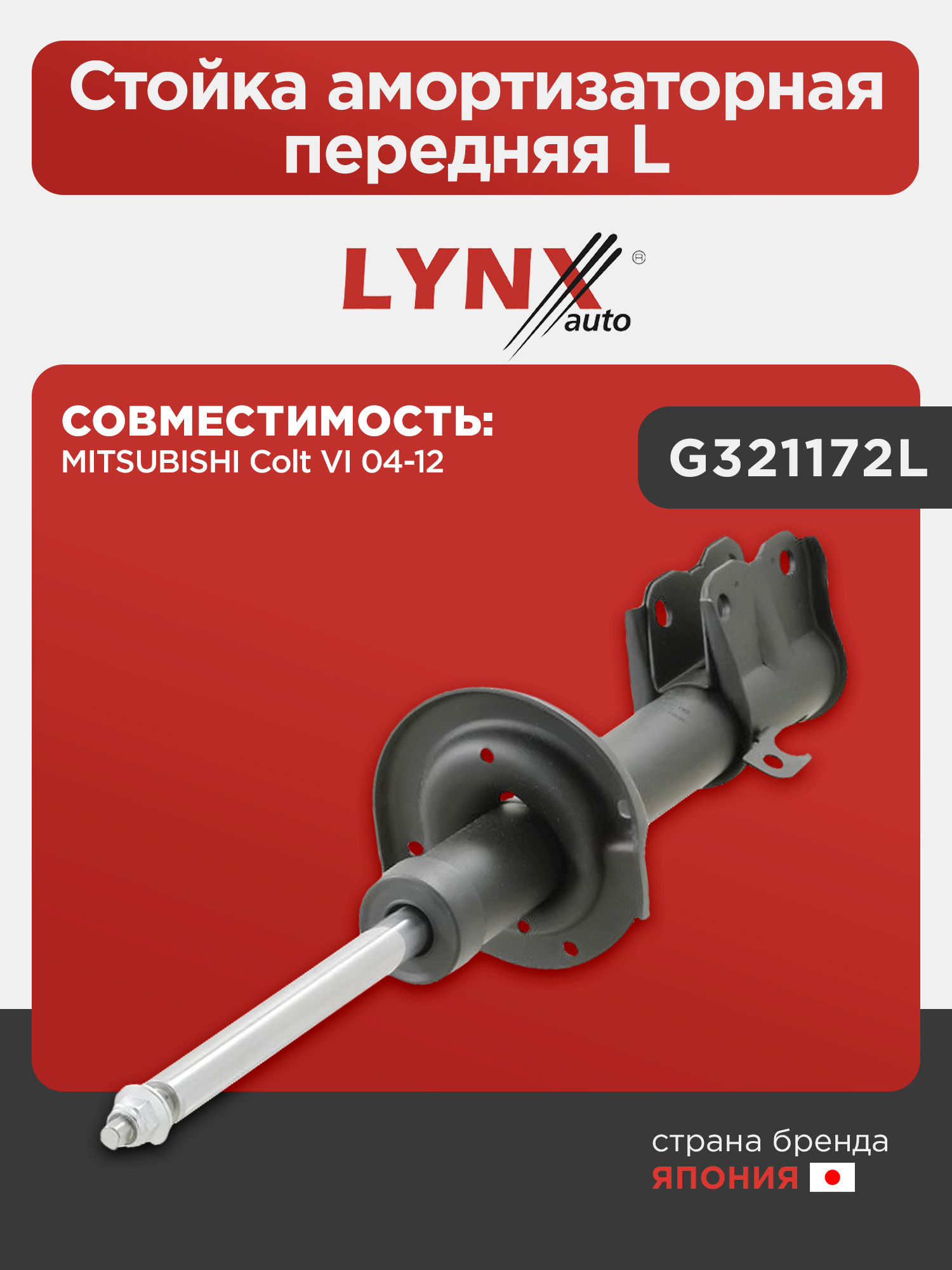 Стойка амортизаторная передняя L LYNXauto G321172L. Для MITSUBISHI Митсубиси Colt VI 04-12