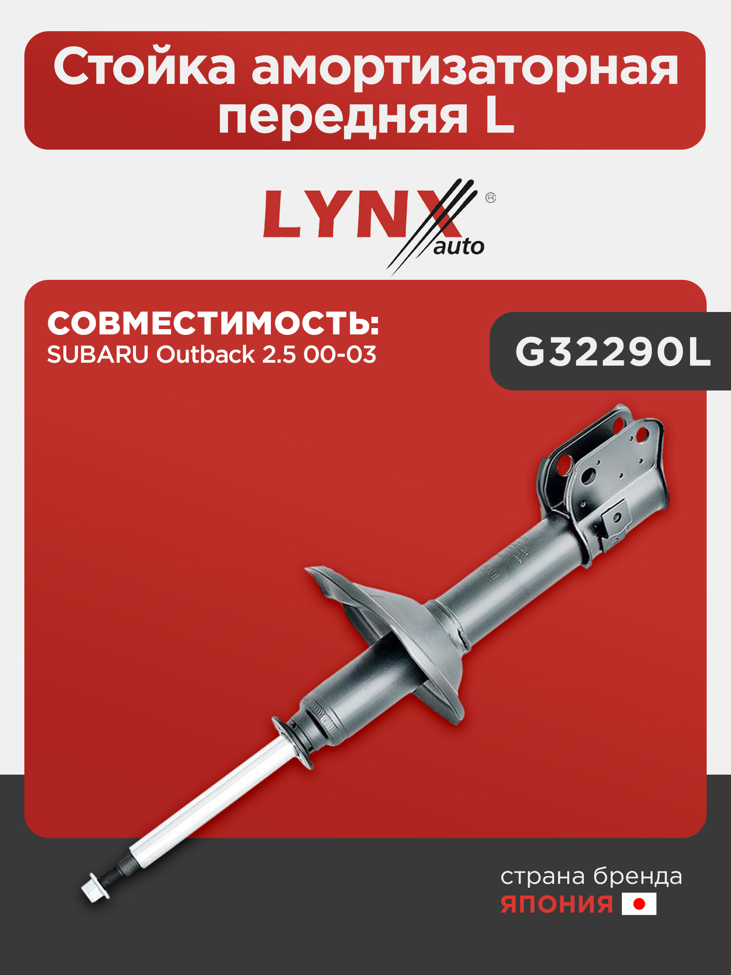 Стойка амортизаторная передняя L LYNXauto G32290L. Для SUBARU Субару Outback(Аутбэк) 2.5 00-03