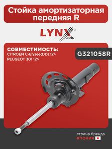 Стойка амортизаторная передняя R LYNXauto G321058R. Для: CITROEN Ситроен C-Elysee(DD) 12>, PEUGEOT Пежо 301 12>