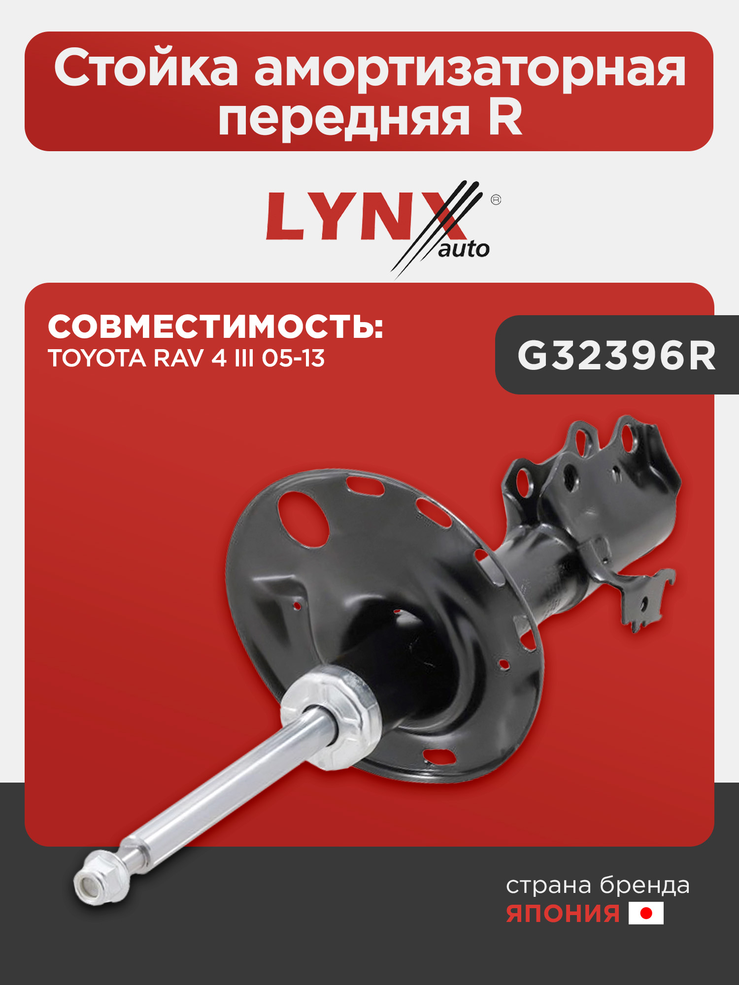Стойка амортизаторная передняя R LYNXauto G32396R. Для TOYOTA Тойота RAV 4(РАВ 4) III 05-13