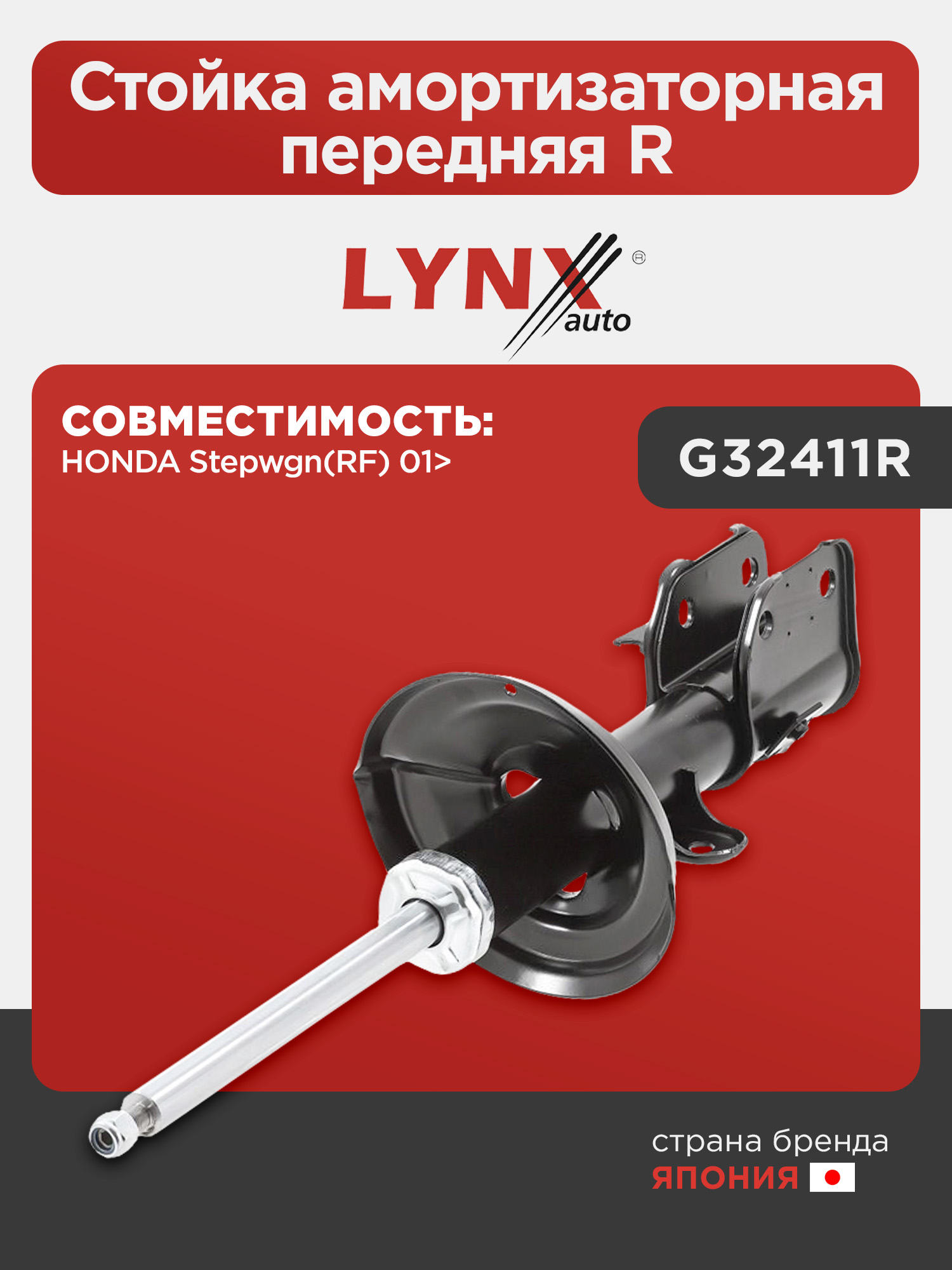 Стойка амортизаторная передняя R LYNXauto G32411R. Для: HONDA Stepwgn(RF) 01>