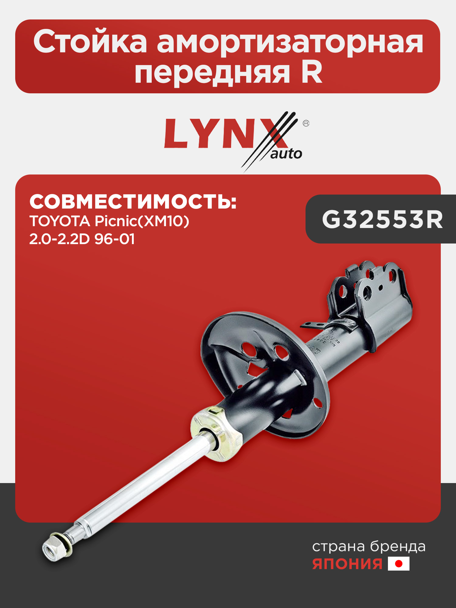 Стойка амортизаторная передняя R LYNXauto G32553R. Для: TOYOTA Picnic(XM10) 2.0-2.2D 96-01