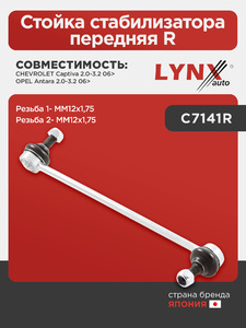 Стойка стабилизатора передняя R LYNXauto C7141R. Для: Chevrolet, Шевроле, Captiva 2.0-3.2 06>, Opel, Опель, Antara(Антара) 2.0-3.2 06>. Резьба 1- MM12x1,75. Резьба 2- MM12x1,75.