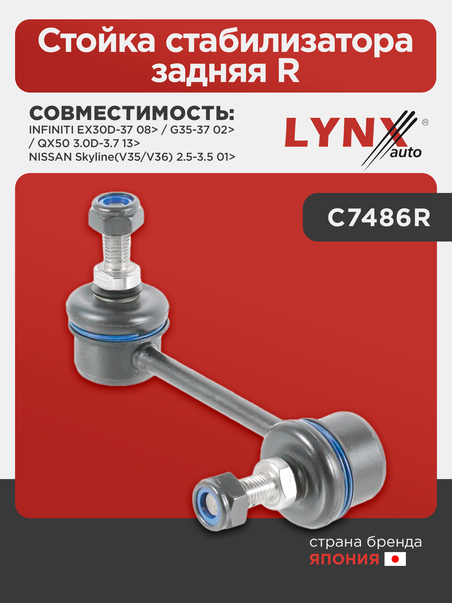Стойка стабилизатора задняя R LYNXauto C7486R. Для: INFINITI EX30D-37 08> / G35-37 02> / QX50 3.0D-3.7 13>, NISSAN Skyline(V35/V36) 2.5-3.5 01>