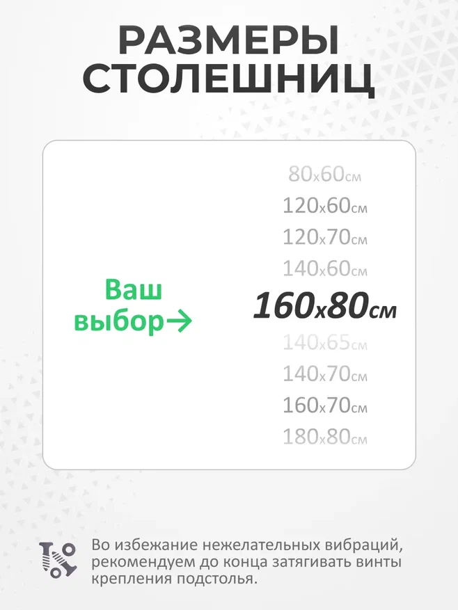 Размер столешницы: 120х60 см/ 120х70 см/ 140х60 см/ 140х70 см/ 160х70 см