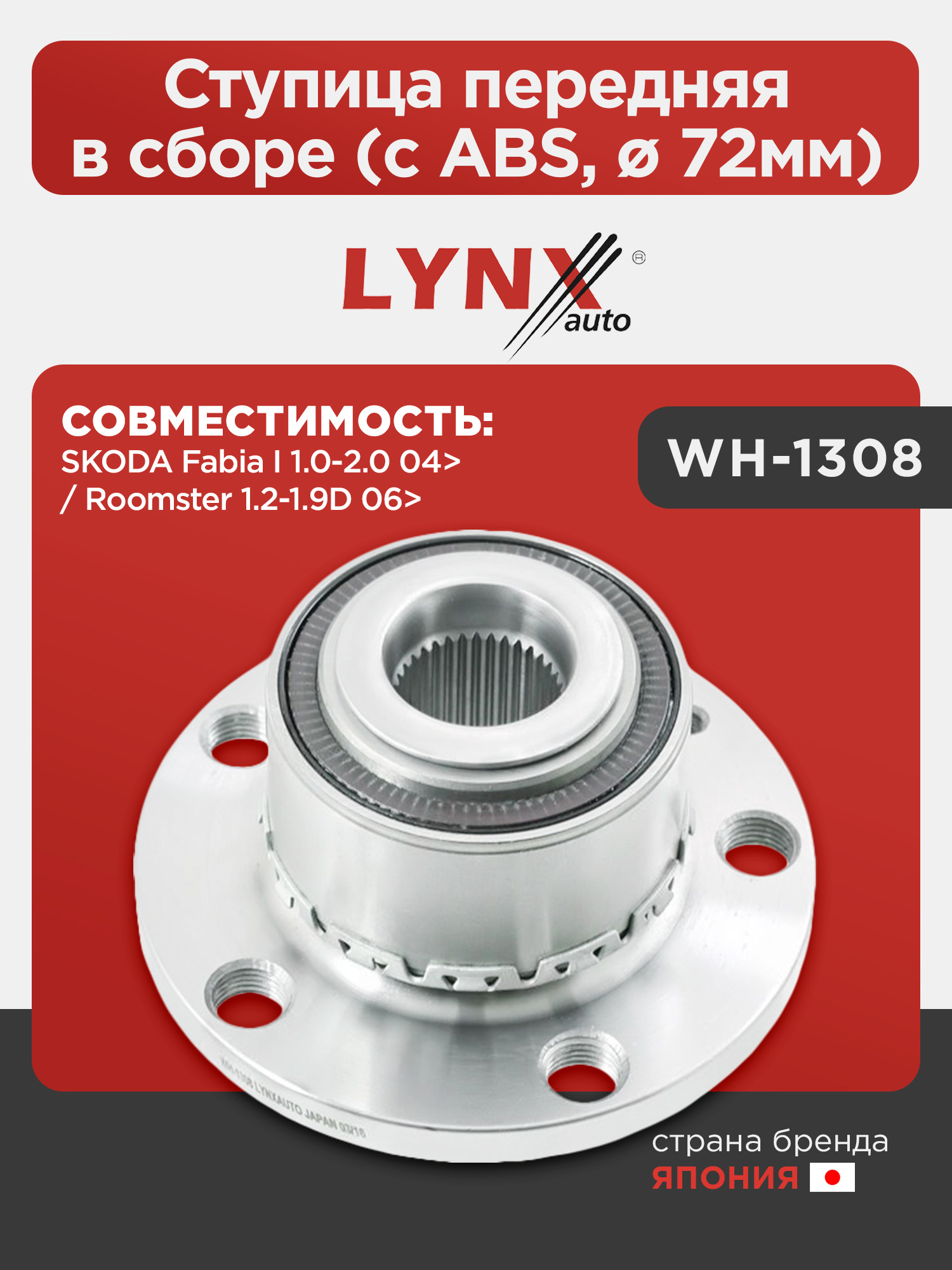 Ступица передняя в сборе (с ABS, ø 72мм) LYNXauto WH-1308. Для: SKODA(Шкода) Fabia(Фабиа) I 1.0-2.0 04> / Roomster 1.2-1.9D 06>