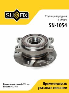 Ступица передняя в сборе SUFIX SN-1054. Применение: NISSAN Qashqai(J11) 1.2-1.6D 13>.