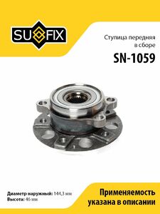 Ступица передняя в сборе SUFIX SN-1059. Применение: SSANGYONG Actyon II 2.0 11> / New Actyon/Korando 2.0 10>.