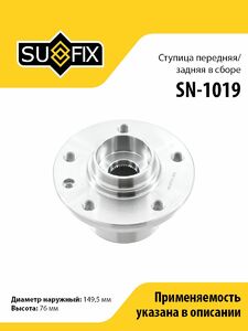 Ступица передняя/задняя в сборе SUFIX SN-1019. Применение: VW Touareg 2.5D 03-10 / Transporter 5 1.9D-3.2 03>.