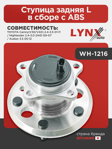 Ступица задняя L в сборе с ABS LYNXauto WH-1216. Для: TOYOTA Camry(V30/V40) 2.4-3.5 01-11 / Highlander 2.4-3.0 2WD 00-07 / Avalon 3.5 05-12
