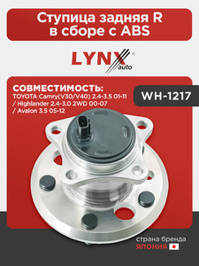 Ступица задняя R в сборе с ABS LYNXauto WH-1217. Для: TOYOTA Camry(V30/V40) 2.4-3.5 01-11 / Highlander 2.4-3.0 2WD 00-07 / Avalon 3.5 05-12