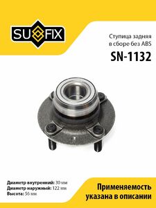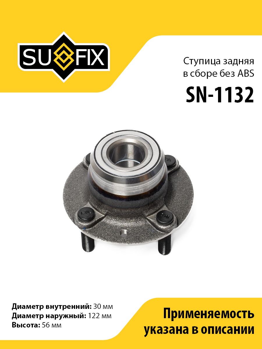 Ступица задняя в сборе без ABS SUFIX SN-1132. Применение: KIA Sephia(FA) 1.5-1.8 93-97 / Shuma / Spectra / Sephia(FB) 1.5-1.8 97-04.