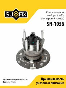 Ступица задняя в сборе (с ABS, 5 отверстий колеса) SUFIX SN-1056. Применение: OPEL Astra H 1.2-2.0 04> / Meriva B 1.3D-1.7D 10> / Zafira B 1.6-2.2 05>.