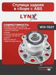 Ступица задняя в сборе с ABS LYNXauto WH-1021. Для: MITSUBISHI Митсубиси ASX 1.8D-2.0 4WD 10> / Outlander(Аутлэндер)/Airtrek II 2.0D-3.0 4WD 07> / Lancer(Лансер) 2.0 4WD 08>, CITROEN Ситроен C4 Aircross 1.6D-1.8D 4WD 12> / C-Crosser 2.0 4WD 10>, PEUGEOT П