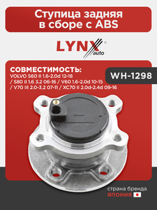 Ступица задняя в сборе с ABS LYNXauto WH-1298. Для: VOLVO S60 II 1.6-2.0d 12-18 / S80 II 1.6 3.2 06-16 / V60 1.6-2.0d 10-15 / V70 III 2.0-3.2 07-11 / XC70 II 2.0d-2.4d 09-16