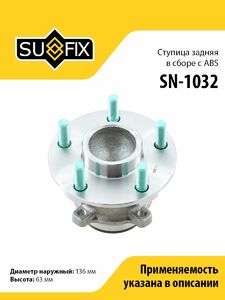 Ступица задняя в сборе с ABS SUFIX SN-1032. Применение: FORD Focus II 1.4-2.5 04> / C-Max 1.6-2.0D 07>.