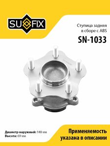 Ступица задняя в сборе с ABS SUFIX SN-1033. Применение: NISSAN Qashqai 1.5D-2.0D 2WD 07> / X-Trail(T31) 2.0-2.0D 2WD 07> / Serena(C26) 2.0 2WD 10>, RENAULT Koleos 2.0D-2.5 2WD 08>.