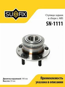 Ступица задняя в сборе с ABS SUFIX SN-1111. Применение: MAZDA 6(GG) 1.8-2.3 02-07 / 323(BJ) 1.4-2.0 98-04 / 626(GW) 1.8-2.0D 98-02 / MPV(LW) 2.0-3.0 99-06 / Premacy 1.9-2.0D 99-05 / Xedos 9 2.5 00-02.