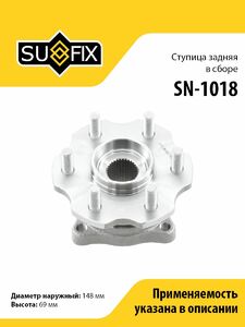 Ступица задняя в сборе SUFIX SN-1018. Применение: NISSAN Pathfinder(R51) 2.5D-4.0 4WD 05>.